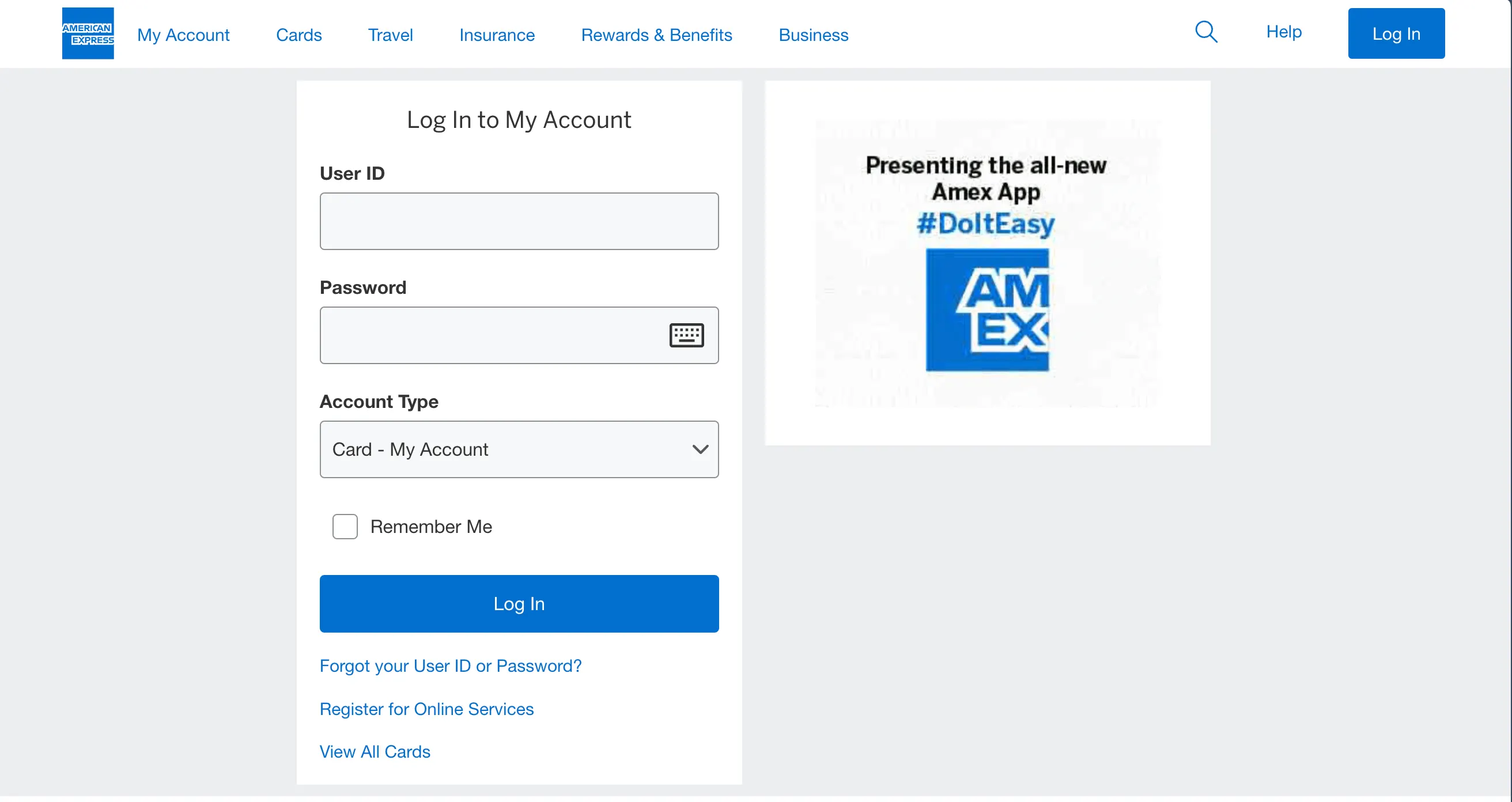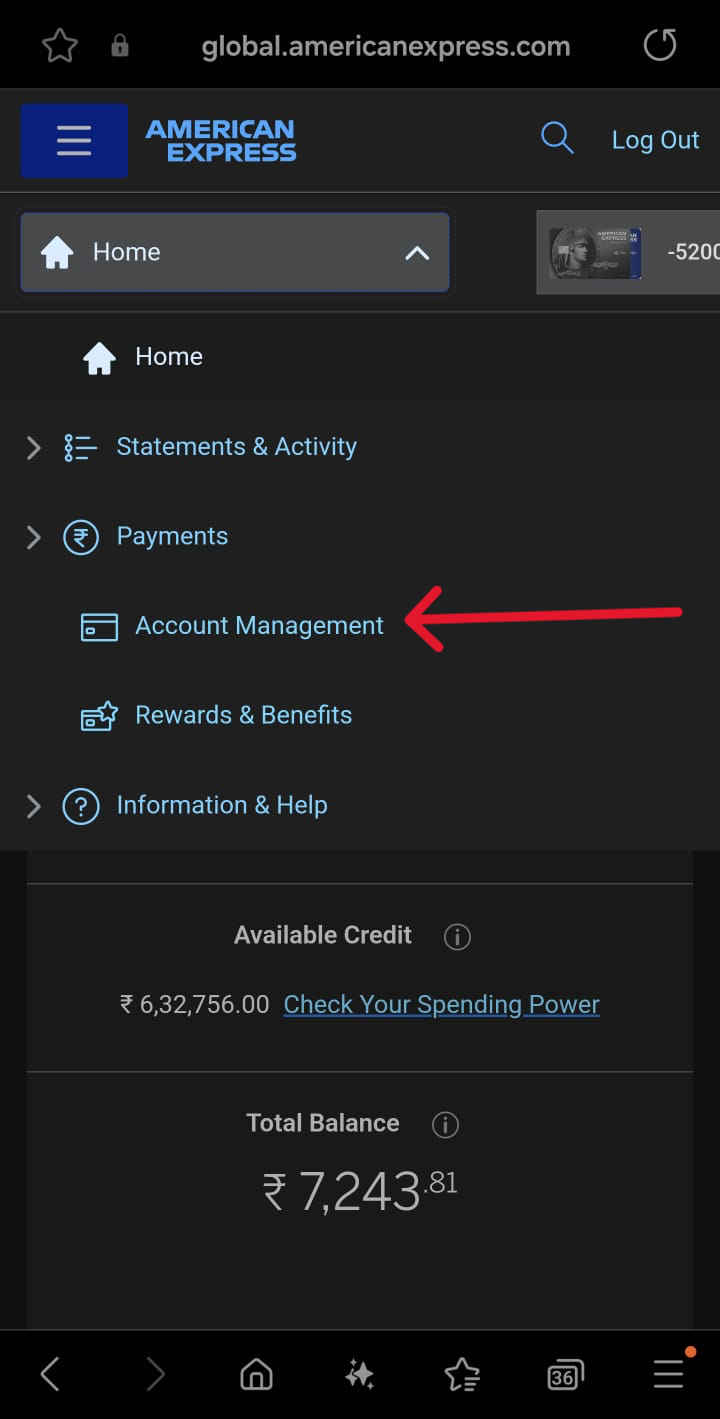 Step 1: Login here using your Amex Account